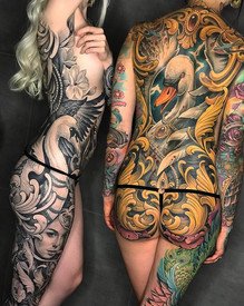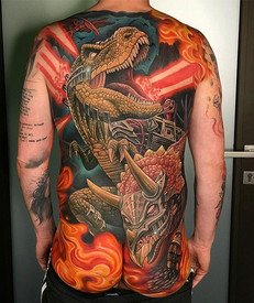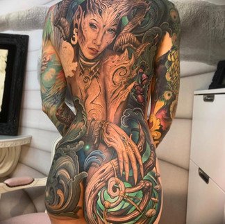 Si vous êtes dans les tatouages et que vous ne connaissez pas Julian Siebert, alors vous vivez sous un rocher et vous manquez un maître du métier. Certains diront que ce tatoueur est trop modeste mais ses œuvres sont vraiment impressionnantes. Son souci du détail est intimidant, surtout quand on pense à son amour pour les tatouages à grande échelle, en particulier les pectoraux. Une pièce de dos qui a impressionné beaucoup de monde, car elle orne le dos du magnifique modèle Makani Terror, elle est vraiment magnifique. Les couleurs sont éclatantes et la composition de la pièce est incroyable!
