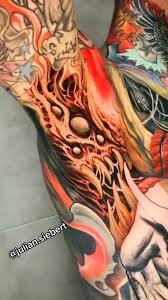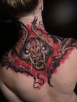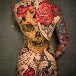 Grand admirateur du génial Paul Booth et de Giger, son portefeuille se concentre principalement sur les images d'horreur et les thèmes plus sombres. Julian Siebert est assurément un géant du tatouage européen.