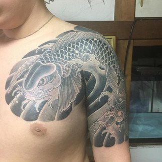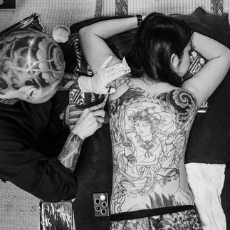 Maintenant, après de nombreuses années consacrées, elle est officiellement connue sous le nom de Horiren Ier . Spécialisée dans les tatouages de style traditionnel japonais, Horiren s'est fait un nom d'enfer en tant qu'artiste.