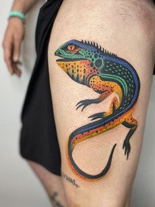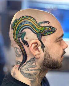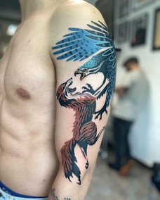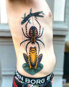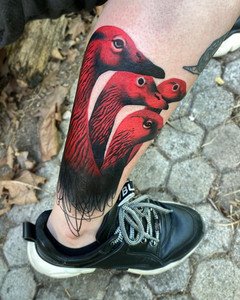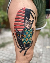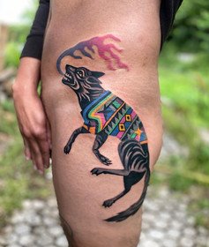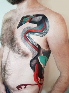 Les tatouages enchanteurs et fous de cette artiste espagnole sont difficiles à décrire - le primitivisme, une variété de techniques artistiques, des motifs médiévaux s'entremêlent dans le tourbillon coloré de l'imagination de l'auteur et donnent naissance à des images inoubliables des personnages de ses tatouages. Son portfolio regorge de couleurs et de formes, mais les œuvres noires ne sont pas moins impressionnantes - c'est une caractéristique de son style d'auteur inimitable.