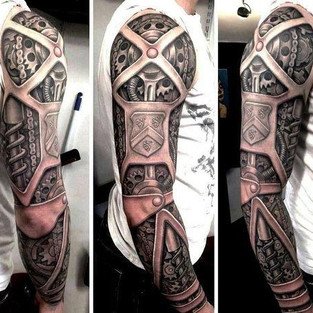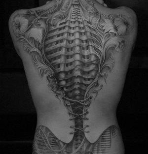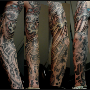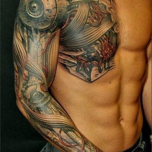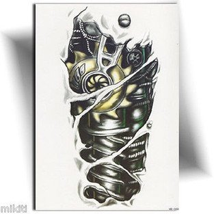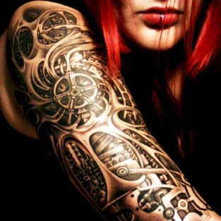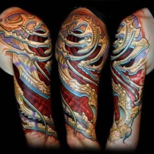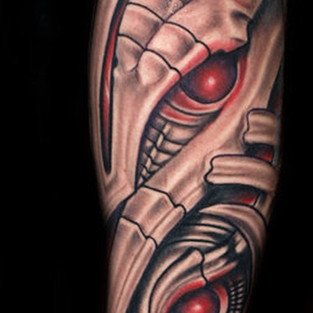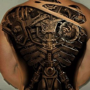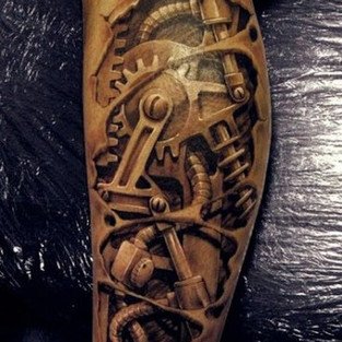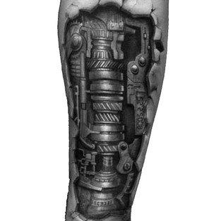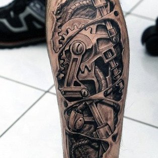 Les tatouages biomécaniques ou bio-organiques tirent principalement leur origine de l’univers de la science-fiction. Il fait allusion au mythe de l’homme objet et de l’homme bionique ou le meta-humain. C’est la raison pour laquelle les motifs représentent souvent des éléments mécaniques et biologiques. Ces dessins sont placés généralement sur des zones du corps qui s’y prêtent.