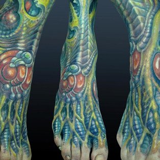 Ce style peut prendre plusieurs formes. On trouve d’abord les dessins robotiques qui sont le plus souvent recouvert pas des tissus humains. L’artiste cherche à donner une illusion métallique à son œuvre. Cet art original cherche à rendre visible une partie mécanique imaginaire de manière à ce qu’on l’image à l’intérieur du corps humain. On est au croisement entre l’apparence humaine externe et cyborg interne. Mais il y a aussi les images bio-organiques qui se caractérisent par des tissus humains auxquelles se mélangent des traces extra-terrestres.
